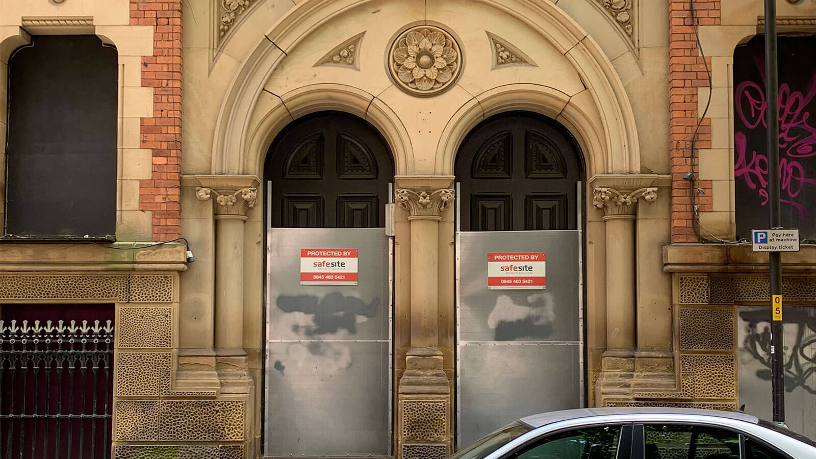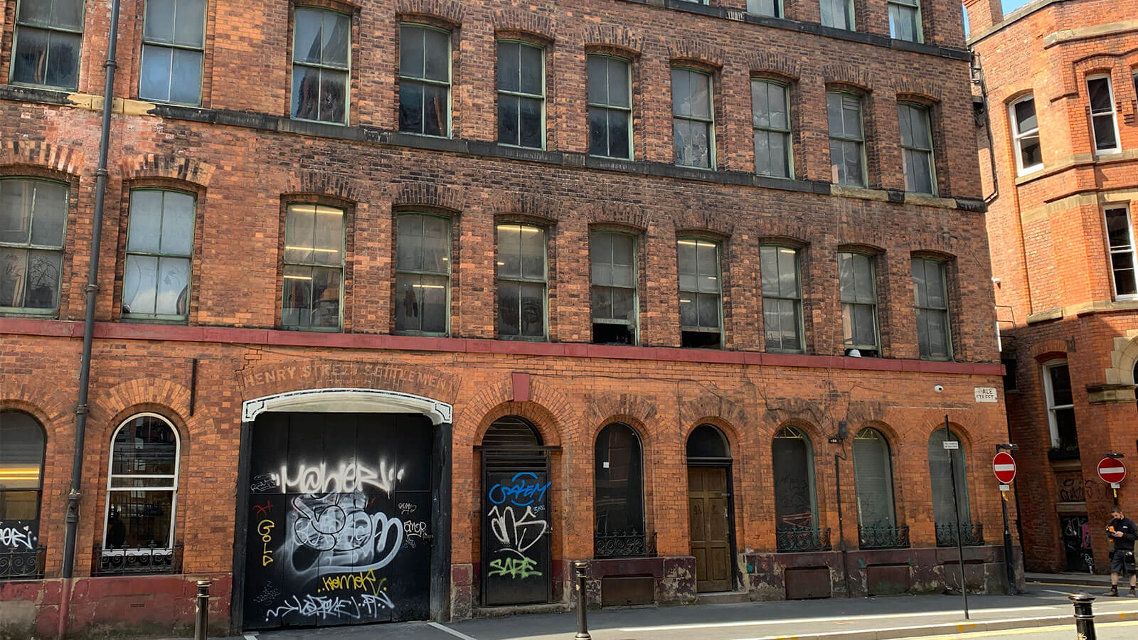 These properties, which make up an entire city block, are boarded up, out of use and Grade-II Listed. The two townhouses on Paton Street would make sophisticated urban homes; the warehouses on Dale Street could be converted to apartments or offices – similar units occupied by fashion brands Boohoo and Nasty Gal are just next door. Is the hard hat we spotted the signs of life?